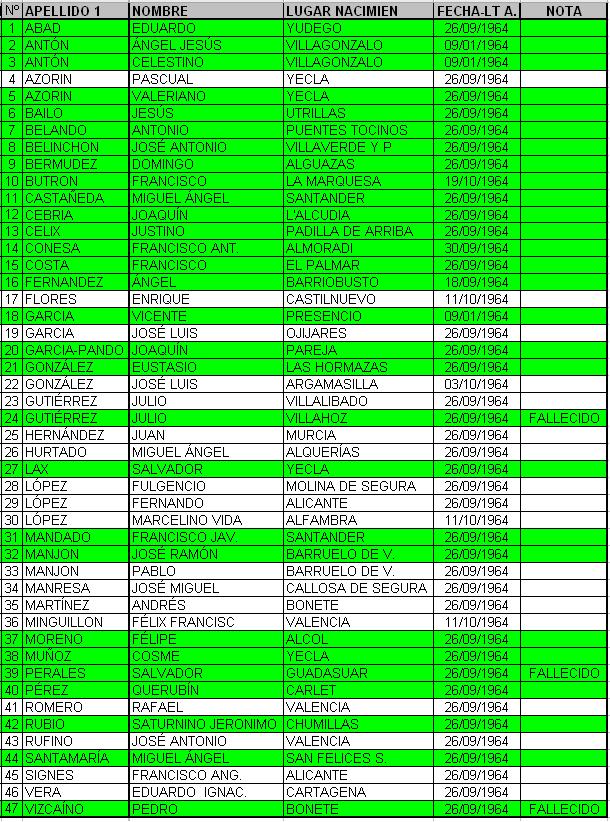LISTA DE LOS QUE INGRESARON EL AÑO 1964