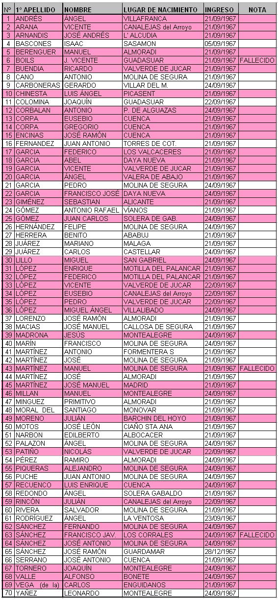 LISTA DE LOS QUE INGRESARON EL AÑO 1967